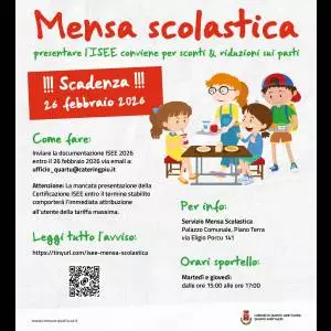 La Certificazione ISEE 2026, indispensabile ai fini del calcolo del costo che deve essere corrisposto per la fruizione dei pasti, doveva essere presentata entro e non oltre il 30 gennaio 2026.