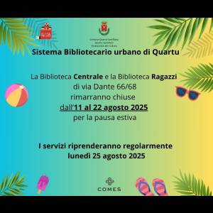 Orari di apertura del Sistema Bibliotecario Urbano di Quartu nel mese di agosto.