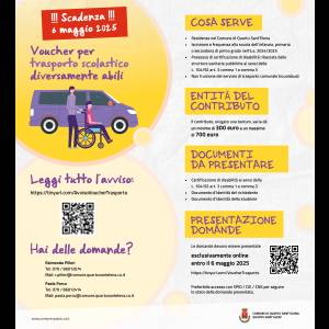 Per maggiori informazioni visitare il Servizio "Voucher trasporto scolastico disabili" nella sezione Educazione e Formazione (qui)