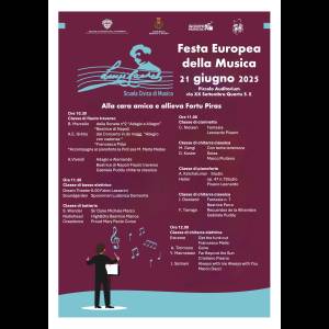 Sabato 21 giugno, dalle 10.30 e a seguire per tutta la sera con gli ultimi concerti che avranno inizio alle 18, 40 allievi si esibiranno nelle diverse discipline. Gli artisti coinvolti porteranno in scena una grande varietà di strumenti, svariando tra diversi generi musicali: spazio a pianisti, cantanti pop/rock e genere Barocco, chitarristi classici e pop/rock, flautisti, batteristi e bassisti. Ogni performance sarà un'opportunità per valorizzare i talenti locali e promuovere la passione per la musica.