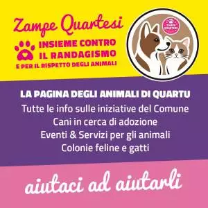 Un ulteriore passo avanti nel costante processo di sensibilizzazione sul tema è stato fatto con il recente lancio del nuovo profilo social del Comune ‘Zampe Quartesi’ (Facebook e Instagram), che in poche settimane ha già superato i 750 follower. Il canale nasce con l’obiettivo di promuovere iniziative ed eventi che permettano di favorire l’adozione dei cani ancora in attesa di una famiglia. In collaborazione con Shardana e Cave Canem, per ogni cane viene realizzata una scheda informativa e condivisa online, rendendo più semplice l’incontro tra animali e potenziali adottanti.