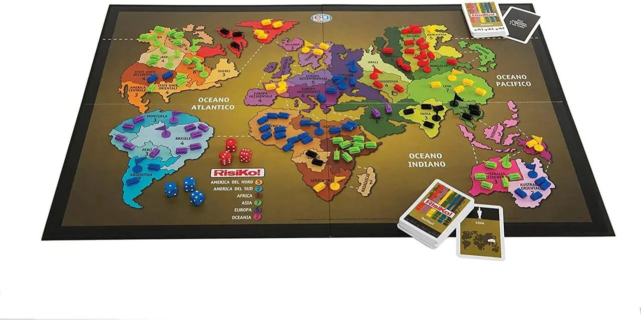 Il RisiKo! è un gioco di strategia molto avvincente che conta appassionati di tutte le età, in tutta Italia, ma anche fuori dai nostri confini. Si svolge su una mappa mondiale suddivisa in territori occupati da armate. Lo scopo è il raggiungimento di un obiettivo predefinito, segreto e diverso per ciascun giocatore, che può consistere nella conquista di un certo numero di territori, nell’occupazione di due o più continenti o nell’eliminazione di un giocatore avversario.