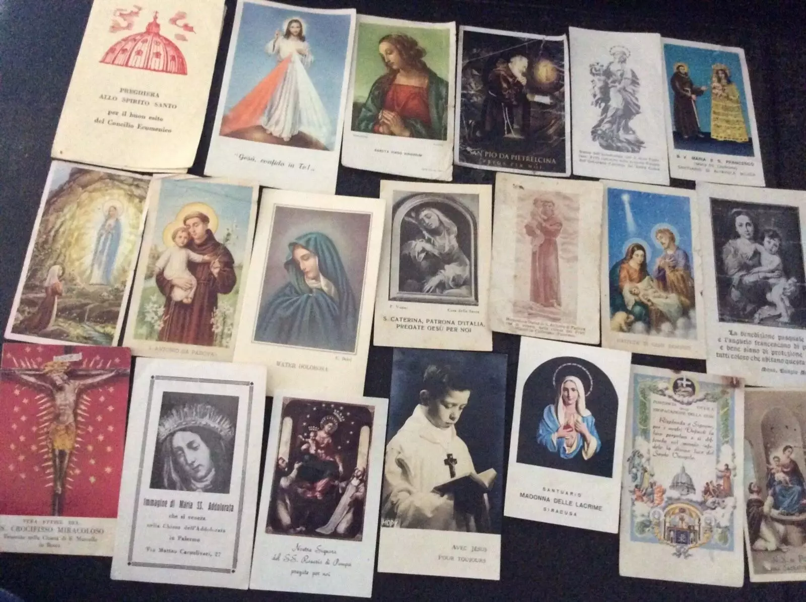 La raccolta propone un ampio percorso iconografico dedicato ai santi, con una particolare presenza delle figure più ricorrenti e popolari della tradizione cristiana. Dalla curiosità iniziale è nata una vera e propria passione collezionistica, che ha portato alla conservazione di immagini capaci di attraversare l’immaginario collettivo in forme sempre nuove, riflettendo epoche storiche, stili artistici e sensibilità differenti.