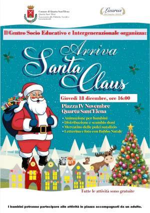 Anche quest’anno Piazza IV Novembre si prepara a vivere la magia del Natale con “Arriva Santa Claus”, un appuntamento pensato per regalare a bambini e famiglie un pomeriggio di festa, socialità e condivisione nel cuore di Quartu Sant’Elena.