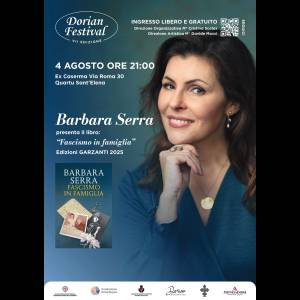 Questa sera, lunedì 4 agosto 2025, alle ore 21,00, l’ex Caserma di Via Roma 30 a Quartu Sant’Elena si prepara ad accogliere un appuntamento di grande spessore culturale nell’ambito della VII edizione del Dorian Festival. Protagonista sarà Barbara Serra, giornalista di fama internazionale, che presenterà il suo ultimo lavoro, Fascismo in famiglia (Garzanti, 2025). Sotto la direzione organizzativa di Cristina Scalas e quella artistica di Davide Mocci, l’evento, a ingresso libero e gratuito, promette di offrire una serata di riflessione profonda e coinvolgente.