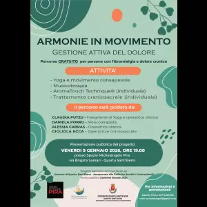 Promosso da Terra dei Sogni APS, Armonie in Movimento è il percorso gratuito di gestione attiva del dolore dedicato alle persone che convivono con fibromialgia e dolore cronico, condizioni spesso accompagnate da isolamento, diagnosi tardive e difficoltà nella gestione della vita quotidiana. Verrà proposto a Quartu nell’ambito dei progetti di Coesione Sociale, finanziati dall’Amministrazione comunale con la supervisione dell’Assessorato ai Servizi Sociali.