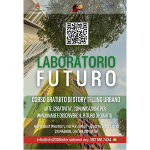 Uno spazio formativo in cui apprenderai a tramutare la tua creatività in immagini, parole, suoni. Sotto la guida di esperti nei settori della comunicazione e ti cimenterai nel descrivere la Quartu del presente e nell’immaginare quella del futuro. L'iniziativa si svolgerà sabato 24 maggio dalle ore 9 alle ore 19 al Hotel Best Western in via Panzini n. 67, Quartu Sant'Elena.