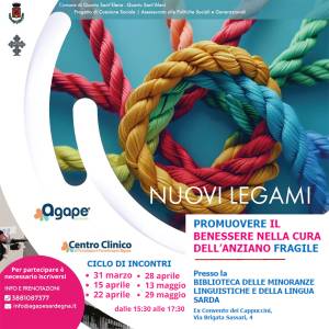 Il progetto “Promuovere il benessere nella cura dell’anziano fragile”, promosso e gestito dalla Cooperativa Agape con il suo centro clinico di psicologia e psicoterapia, rientra nell'ambito del più ampio programma 'Nuovi legami’.