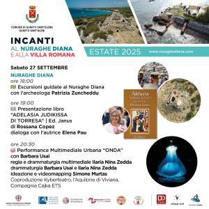 Primo fine settimana d’Autunno e prosegue l’offerta culturale della rassegna Incanti, che già ha valorizzato i siti storico-archeologici del litorale quartese durante l’estate. Le visite guidate al Nuraghe Diana e alla Villa Romana sono accompagnate da spettacoli, concerti, laboratori, presentazione di libri e altre iniziative che invitano quartesi, altri cittadini dell’area metropolitana e turisti a scoprire la bellezza del nostro territorio.