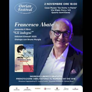 Doppio appuntamento in pochi giorni a Quartu per il Dorian Festival e due ospiti di valore, seguiti e apprezzati ben oltre i confini isolani, ciascuno nel rispettivo ambito: prima Lorenzo Braina, due giorni dopo Francesco Abate. Due momenti per riflettere, approfondire, interagire e capire, ma anche più semplicemente per stare insieme e godersi una serata diversa dal solito.