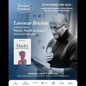 Primo appuntamento venerdì 31 ottobre, presso l’Auditorium della Basilica di Sant’Elena, in via Diaz, alle 18.30, per la presentazione del nuovo libro del pedagogista e scrittore Lorenzo Braina, dal titolo ‘Madri, storie di donne’ (Edizioni Due Mari). Una serata speciale, con l’autore che nel suo monologo racconterà il senso profondo del libro, in cui raccoglie testimonianze autentiche e profonde: interviste, dialoghi e lettere che danno voce a decine di donne incontrate nel suo cammino umano e professionale.