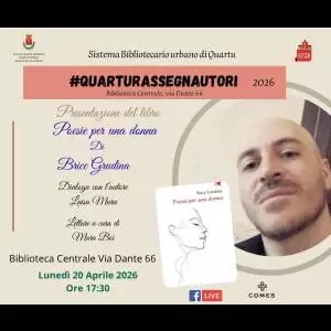 Prosegue a Quartu Sant’Elena il calendario della rassegna letteraria Quartu Rassegna Autori 2026, che lunedì 20 aprile alle ore 17:30 farà tappa ancora presso la Biblioteca Centrale di via Dante 66 con la presentazione del libro “Poesie per una donna” di Brice Grudina.