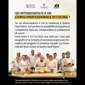 Se sei disoccupata/o e residente a Quartu Sant’Elena, puoi candidarti per partecipare al corso professionale di cucina.