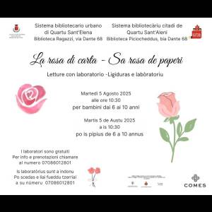 Martedì 5 agosto 2025 alle ore 10.30 nella Biblioteca Ragazzi di via Dante 68 un nuovo appuntamento culturale dedicato ai giovani appassionati di letteratura quartesi. Il Sistema Bibliotecario Urbano di Quartu Sant’Elena, in collaborazione con la Cooperativa Comes, promuove l’iniziativa “La Rosa di carta”.