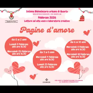 Si chiama ‘Pagine d’Amore’ il programma proposto dal Sistema Bibliotecario Urbano, in collaborazione con la Cooperativa Comes, per febbraio. Gli appuntamenti si terranno nelle giornata di lunedì e mercoledì, sempre alle 16.30, e saranno suddivisi in base all’età dei piccoli quartesi interessati alla letteratura e alle storie.