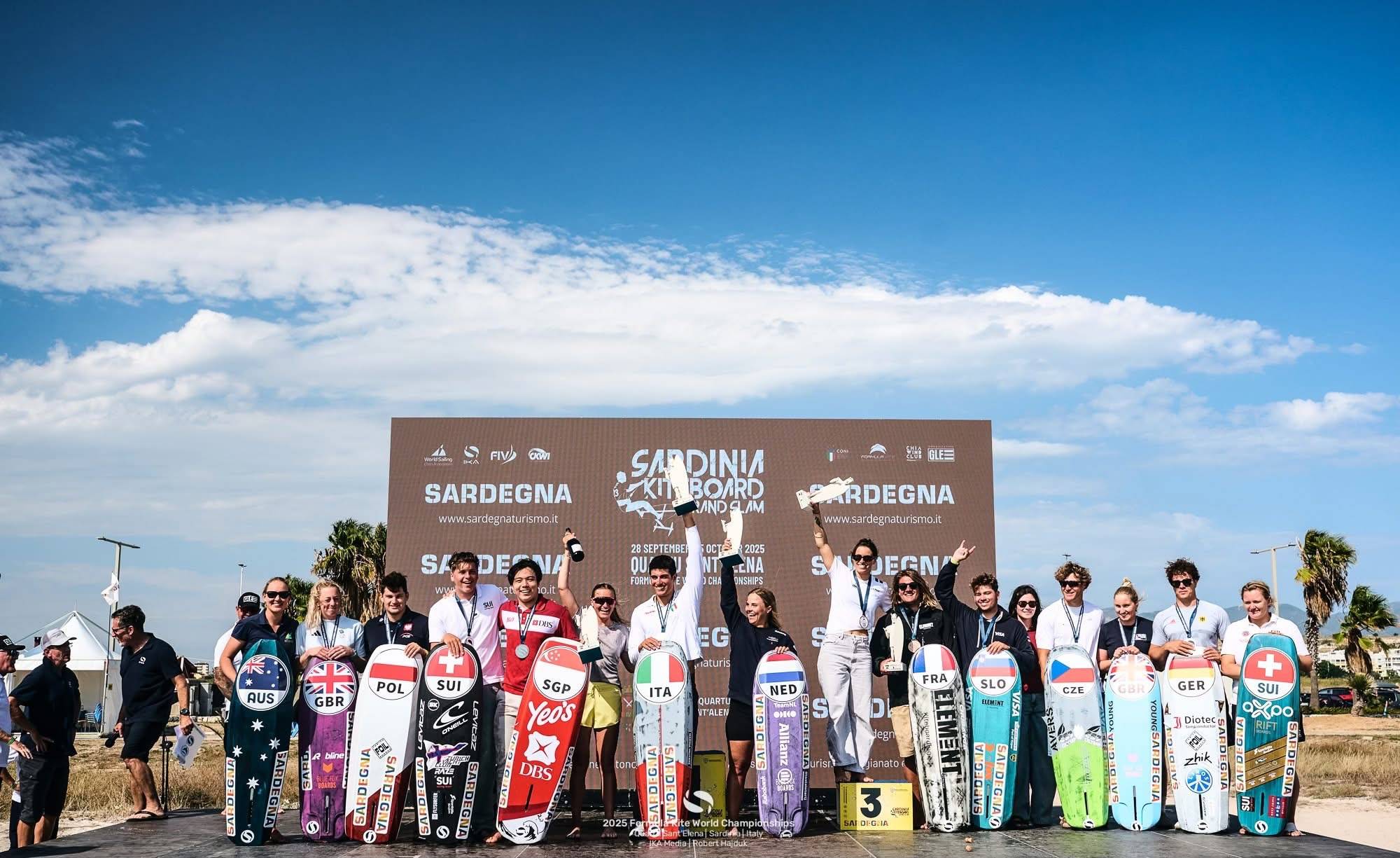 Riccardo Pianosi e Jessie Kampman sono i campioni del mondo di Formula Kite. Si sono presi la corona vincendo la nona edizione del Sardinia Grand Slam, valida quale Mondiale 2025 della disciplina che ha fatto il suo debutto olimpico lo scorso anno a Parigi. Nelle rispettive Grand Final, disputate a Quartu Sant’Elena a conclusione delle Medal Series domenica 5 ottobre, Pianosi e Kampman hanno preceduto rispettivamente Maximilian Maeder e Benoit Gomez, argento e bronzo fra gli uomini, Daniela Moroz e Lauriane Nolot, seconda e terza in campo femminile. Per Pianosi e Kampman è il primo titolo mondiale, ma lo è anche per Italia e Olanda. Le Medal Series si sono disputate con venti di maestrale fra i 14 e i 20 nodi.