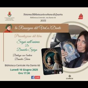 Lunedì 16 giugno 2025, alle ore 17,30, la Biblioteca Centrale di Via Dante 66 a Quartu Sant’Elena si apre a un incontro che promette di toccare il cuore. Daniela Spiga presenta il suo ultimo romanzo, Segni nell’anima, in un dialogo intimo e profondo con Daniela Tevere. Un appuntamento che, come un filo di seta, intreccia letteratura, emozioni e riflessioni sulla complessità dell’umano e si inserisce all’interno della Rassegna del Via(n) Dante, sostenuta dalla Cooperativa Comes e inserita nel circuito Città che legge.