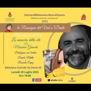 Rassegna Via(n)Dante, la biblioteca centrale ospita l'autore Massimo Granchi con 'La memoria della vite'