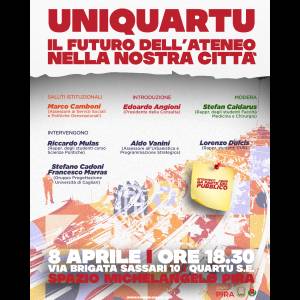 Tra i relatori anche Riccardo Mulas, Rappresentante degli studenti del corso in Scienze Politiche, e Lorenzo Dulcis, Rappresentante degli studenti del CUS. Dopo gli interventi programmati, la seconda parte del programma prevede domande e interventi liberi da parte del pubblico.