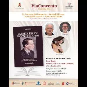 Nuovo appuntamento con ViaConvento Primavera 2026, la rassegna culturale ospitata presso l’Ex Convento dei Cappuccini – Sala dell’Affresco, in via Brigata Sassari 4 a Quartu Sant’Elena. Giovedì 16 aprile, alle ore 18.00, è in programma la presentazione del libro 'Patrick Pearse. Io sono l’Irlanda!' di Italo Siddu (Abra Books, 2025).
