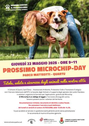 Le giornate del Microchip Day si inquadrano all’interno delle azioni previste dalla campagna sulla Salute e il Benessere degli Animali del Comune di Quartu Sant’Elena.