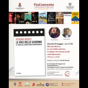 Dopo la partecipatissima due giorni con Maria Francesca Chiappe ed Enzo Amendola tra domenica e lunedì, la rassegna ViaConvento - Primavera riprende i suoi classici appuntamenti del giovedì ospitando un’altra autrice isolana, pronta a raccontare la nostra Sardegna in un’analisi della settima arte: nella Sala dell’Affresco, in collaborazione con il Festival della Letteratura del Mediterraneo, arriva Myriam Mereu con il suo ‘Le voci dello schermo’, un approfondimento sul linguaggio del cinema sardo contemporaneo.