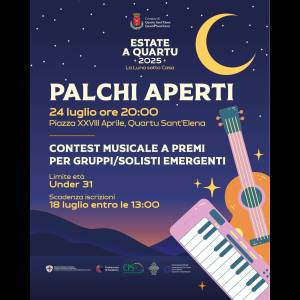 Giovedì 24 luglio, dalle 20, in piazza XXVIII Aprile è tempo di Contest con Palchi Aperti, con un appuntamento dedicato ai nuovi talenti del panorama musicale quartese e dell’area metropolitana, offrendo loro un’importante occasione di visibilità e confronto. Uno spazio inclusivo e dinamico, pensato per valorizzare la creatività emergente e favorire l’incontro tra nuove voci e un pubblico appassionato. Durante le serate, i giovani artisti si alterneranno sul palco per esibirsi dal vivo, mettendo in gioco il proprio stile e la propria originalità. A valutarli sarà una giuria tecnica composta da quattro professionisti della scena musicale e culturale sarda: Diego Pani, etnomusicologo e artista, Francesca Romana Motzo, musicista, musicoterapeuta e direttrice artistica del Jazzin’ Family, Simone Cavagnino, speaker radiofonico e promotore culturale, Stefania Secci Rosa, cantautrice, compositrice e performer. A loro il compito di valutare i partecipanti, ma anche il pubblico sarà chiamato a esprimere la propria preferenza, tramite QR code, contribuendo quindi all’esito finale.