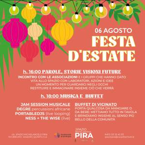 Spazio Michelangelo Pira: mercoledì 6 agosto la 'Festa d'Estate' aperto alla cittadinanza