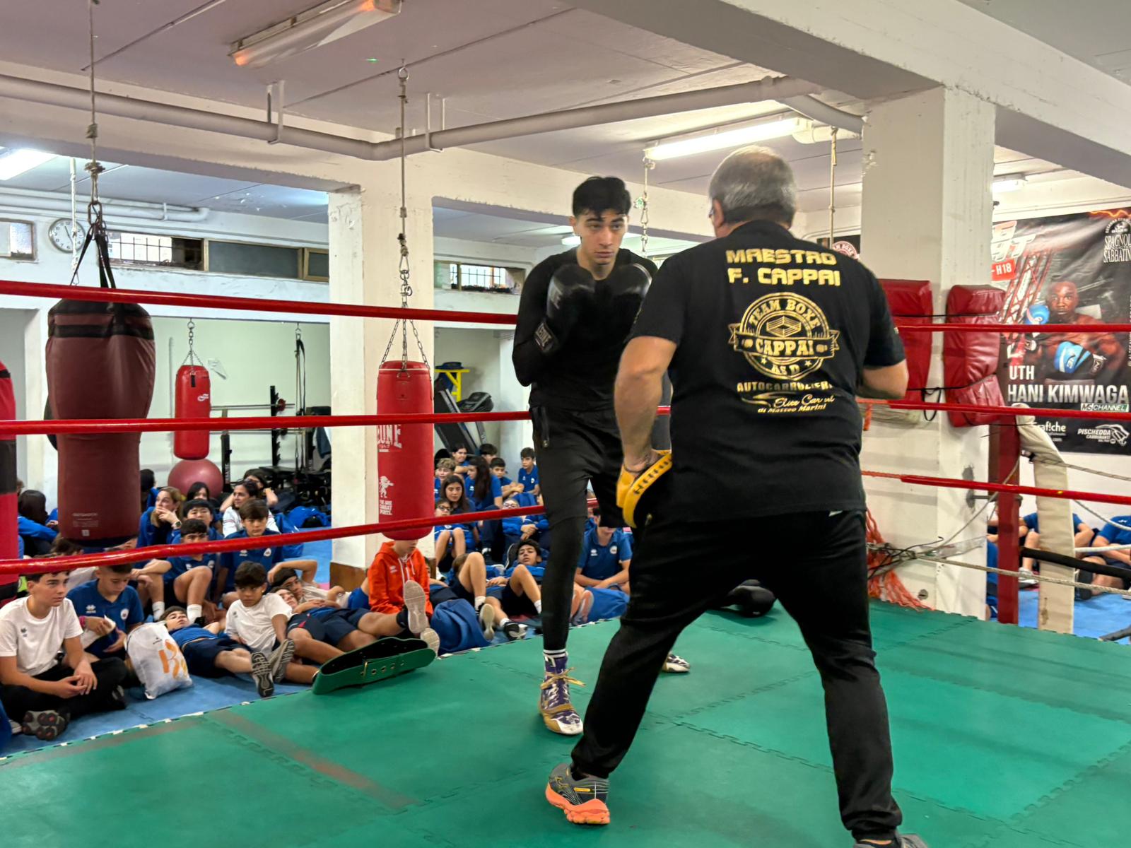 La seconda giornata, ospitata presso la sede del Team Boxe Cappai ASD in via Vico 125, è stata dedicata a esibizioni tecniche, dimostrazioni e attività pratiche, permettendo agli studenti di vivere da vicino l’atmosfera del ring.