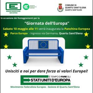 Il MFE Sezione di Quartu Sant’Elena con il patrocinio del Comune di Quartu ha lanciata l'iniziativa anche per la propria città e nell’ambito della Giornata dell’Europa 2025, tradizionalmente festeggiata il 9 maggio di ogni anno, il prossimo 10 maggio 2025 presso il Parco Europa di Quartu Sant’Elena, dalle 11 alle 13, verrà inaugurata una panchina come simbolo per un’Europa unita. Lo slogan della campagna ‘Unisciti a noi per dare forza ai valori Europei!’ sottolinea l'importanza di un’Europa forte.