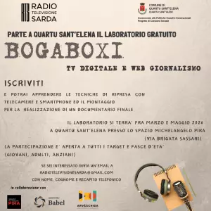 Un’altra proposta, un’altra attività, un altro motivo di coinvolgimento, inclusione, partecipazione per i cittadini di Quartu. Nell’ambito dei progetti di Coesione sociale, finanziati dal Comune con la supervisione dell’Assessorato ai Servizi sociali e alle Politiche generazionali, l’Associazione Culturale RTS – Radio Televisione Sarda fra marzo e maggio 2026 lancia il progetto ‘Bogaboxi’, che prevede un laboratorio gratuito volto alla realizzazione di un documentario.