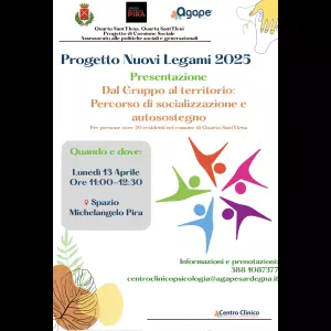 Promosso da Agape Cooperativa Sociale, il percorso “Dal gruppo al territorio” si propone come uno spazio di incontro e autosostegno in cui i partecipanti potranno mettersi in gioco attraverso attività mirate alla condivisione e alla crescita personale.