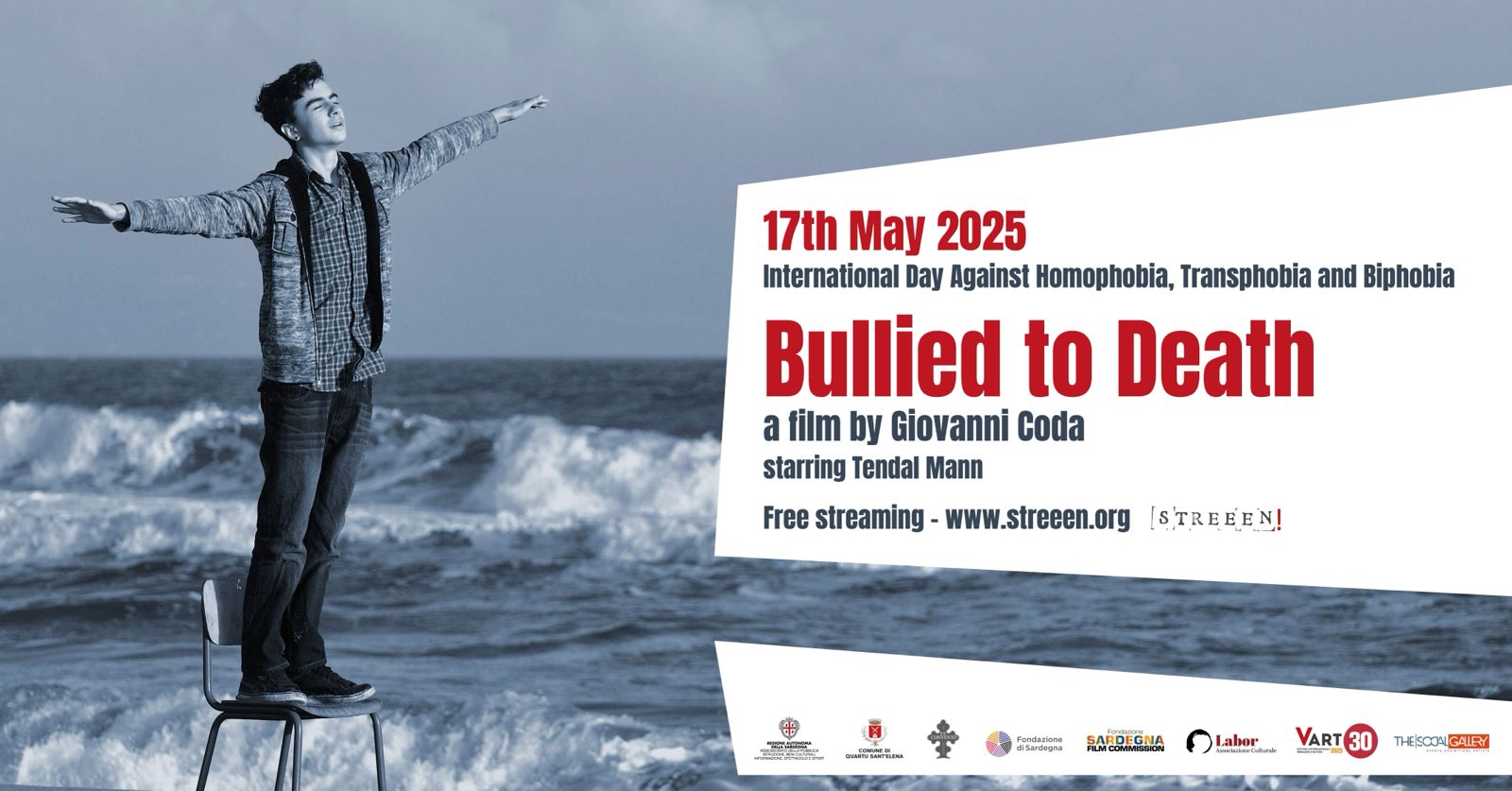In occasione della Giornata Internazionale Contro l'Omofobia, la Lasbofobia, la Bifobia e la Transfobia STREEEN, grazie alla collaborazione con la 30esima edizione di V-Art Festival Internazionale Immagine d'Autore e The Social Gallery Quartu Sant’Elena verrà proiettato ‘Bullied To Death’, un film di Giovanni Coda.