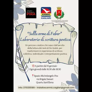 Da gennaio la sede provinciale ANMIC di Cagliari promuove a Quartu Sant’Elena il laboratorio di scrittura poetica “Sulle orme di Faber”, un percorso creativo dedicato alle persone con disabilità e pensato come occasione di espressione, ascolto e condivisione. L’attività prende ispirazione dai testi di Fabrizio De André e si sviluppa attraverso la lettura a più voci, la scrittura collettiva e la rielaborazione individuale, fino a culminare in un reading finale aperto alla cittadinanza.
