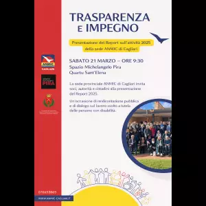 Sabato 21 marzo, alle ore 9:30, presso lo Spazio Michelangelo Pira di Quartu Sant’Elena, la sede provinciale dell’ANMIC di Cagliari presenterà pubblicamente il Report sull’attività svolta nel corso del 2025, nell’ambito dell’incontro dal titolo “Trasparenza e impegno”. Un appuntamento pensato come momento di rendicontazione e condivisione del lavoro portato avanti a tutela delle persone con disabilità, ma anche come occasione per offrire alla comunità e alle istituzioni uno sguardo concreto sull’impegno quotidiano dell’associazione in tutto il territorio riconducibile alla città Metropolitana di Cagliari (come di recente ampliata), al Medio Campidano e al Sulcis-Iglesiente.