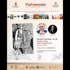 Prosegue la rassegna ViaConvento – Autunno 2025 con la presentazione del nuovo romanzo di Giorgio La Spisa, 'Tutto è in quegli occhi' (Arkadia, 2025). L’incontro si terrà giovedì 27 novembre alle ore 18 presso la suggestiva Sala dell’Affresco dell’Ex Convento dei Cappuccini in via Brigata Sassari 4 a Quartu Sant’Elena. Nell'occassione dialogherà con l’autore Antonello Picci. L’evento è realizzato in collaborazione con l’Associazione Argonautilus.