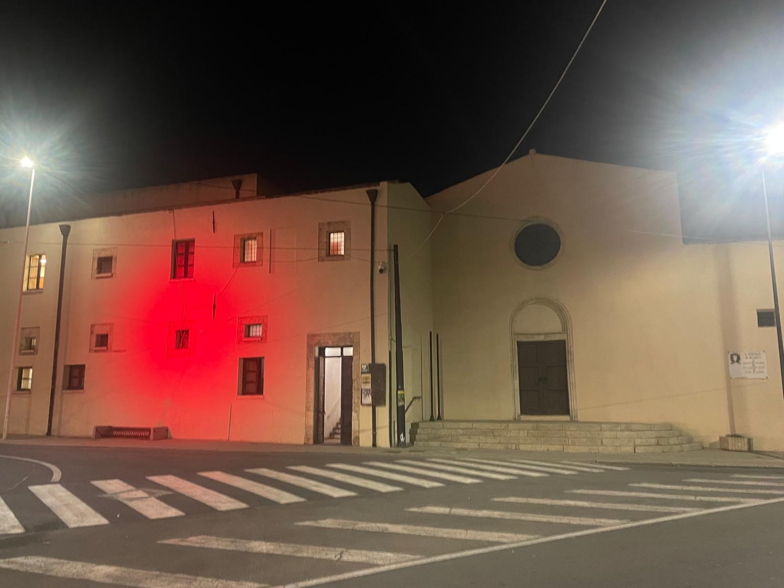 Ex Convento illuminato di rosso nella Giornata per eliminazione delle armi nucleari