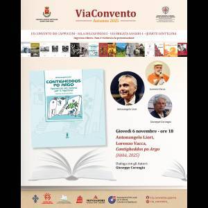 Nuovo appuntamento per la rassegna ViaConvento – Autunno 2025 con una serata dedicata alla lingua, alla memoria e alle radici della Sardegna. Giovedì 6 novembre alle ore 18, nella Sala dell’Affresco dell’Ex Convento dei Cappuccini, in via Brigata Sassari 4 a Quartu Sant’Elena, si terrà la presentazione del libro “Contigheddos po Argo. Favolette del nonno al nipotino” (Abbà, 2025) di Antonangelo Liori, con le illustrazioni di Lorenzo Vacca. A dialogare con gli Autori sarà Giuseppe Corongiu.