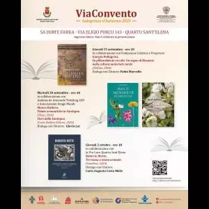 Un ciclo di presentazioni che intreccia arte, botanica e storia per raccontare la Sardegna attraverso lo sguardo e la ricerca di tre autori: Giorgio Pellegrini, Mauro Ballero e Roberto Mette. È la proposta di ‘Anteprima d’Autunno 2025’, nuovo round della rassegna ‘ViaConvento’, che sta accompagnando gli appassionati quartesi di libri e di cultura sarda lungo tutto il corso dell’anno. I tre appuntamenti letterari si terranno nell’antica casa museo Sa Dom’e Farra, sempre con inizio alle 18.